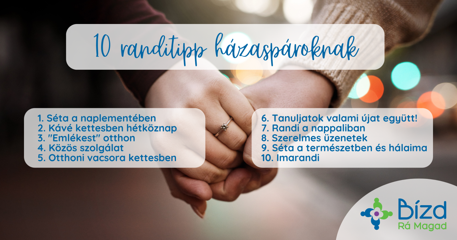 Sokan azt gondolják, főleg az idősebb korosztályból, hogy a randizás a fiatalok kiváltsága. Pedig éppen a házasságban van rá a legnagyobb szükség. A randi nem feltétlenül gyertyafényes vacsora, hanem idő, amit csak egymásnak adunk.