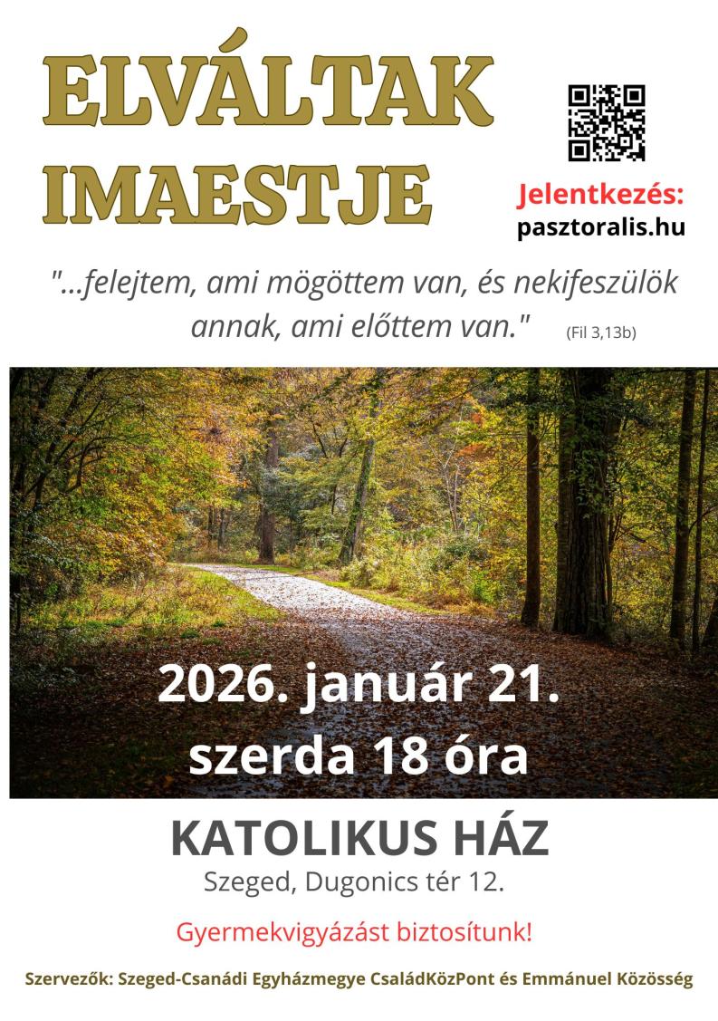 "…felejtem, ami mögöttem van, és nekifeszülök annak, ami előttem van." (Fil 3,13b) mottóval hívunk és várunk minden érintettet az elváltak imaestjére.