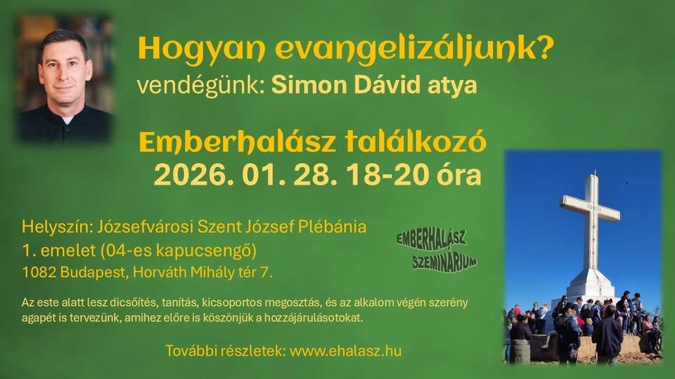Örömmel hívunk Benneteket a január végi emberhalász találkozóra, melynek előadója Simon Dávid soproni iskolai- és egyetemi lelkész lesz.