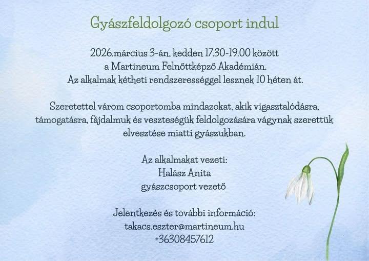 Szeretettel várják a csoportba azokat, akik vigasztalódásra, támogatásra, fájdalmuk és veszteségük feldolgozására vágynak szerettük elvesztése miatti gyászukban.