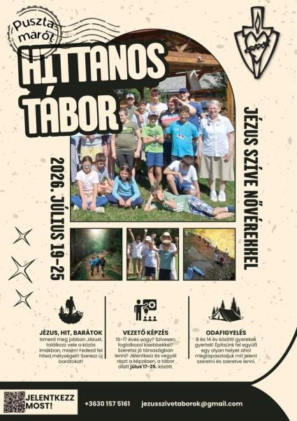 Plébániaközi hittanos tábor a Jézus Szíve nővérek vezetésével július 19-25 Pusztamatóron. Különösen hívjuk és várjuk azoknak a plébániáknak a hittanosait, akik nem szerveznek külön hittantábort a gyerekek részére.