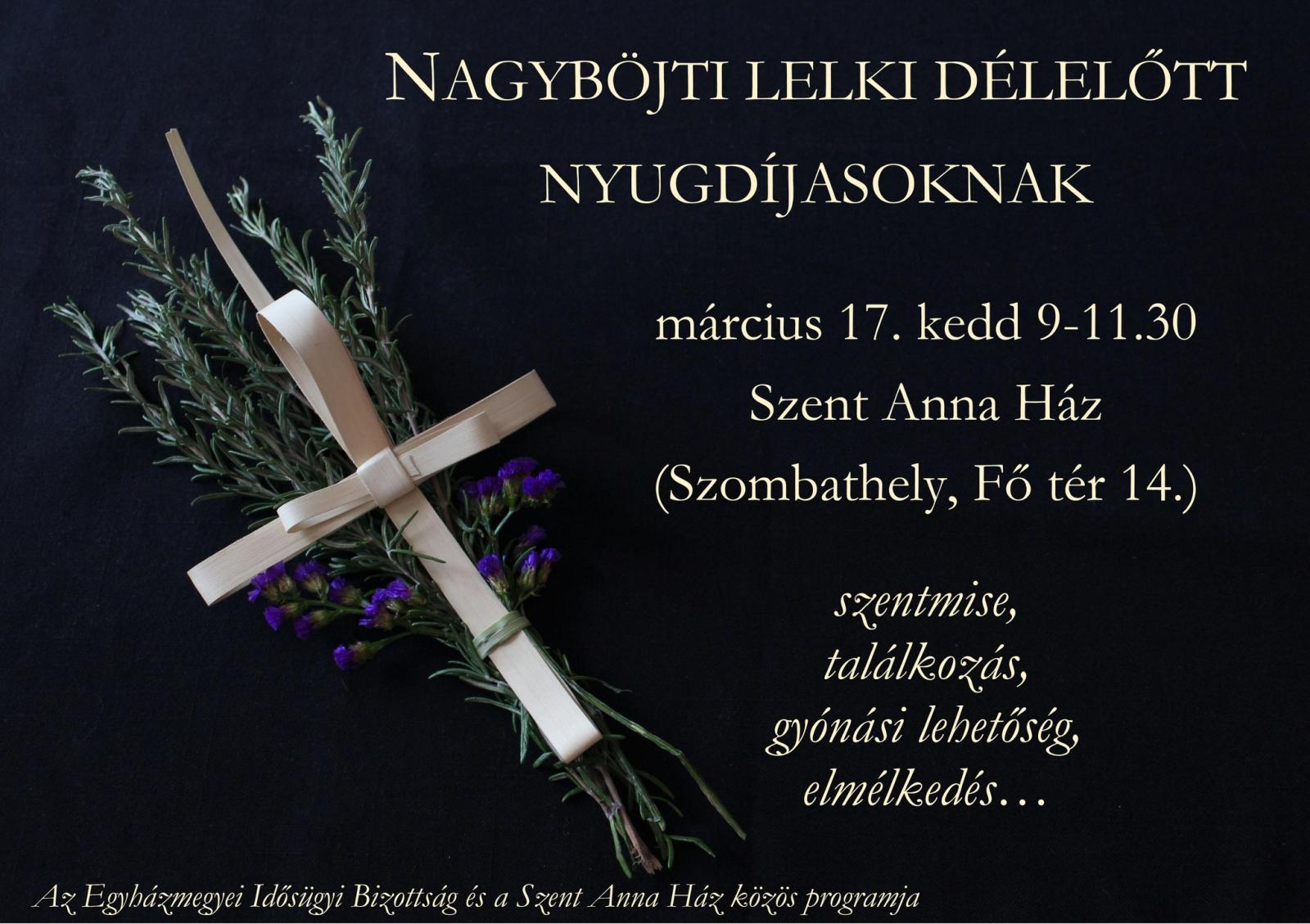 Szeretettel várnak minden nyugdíjast erre a nagyböjti lelki délelőttre.
