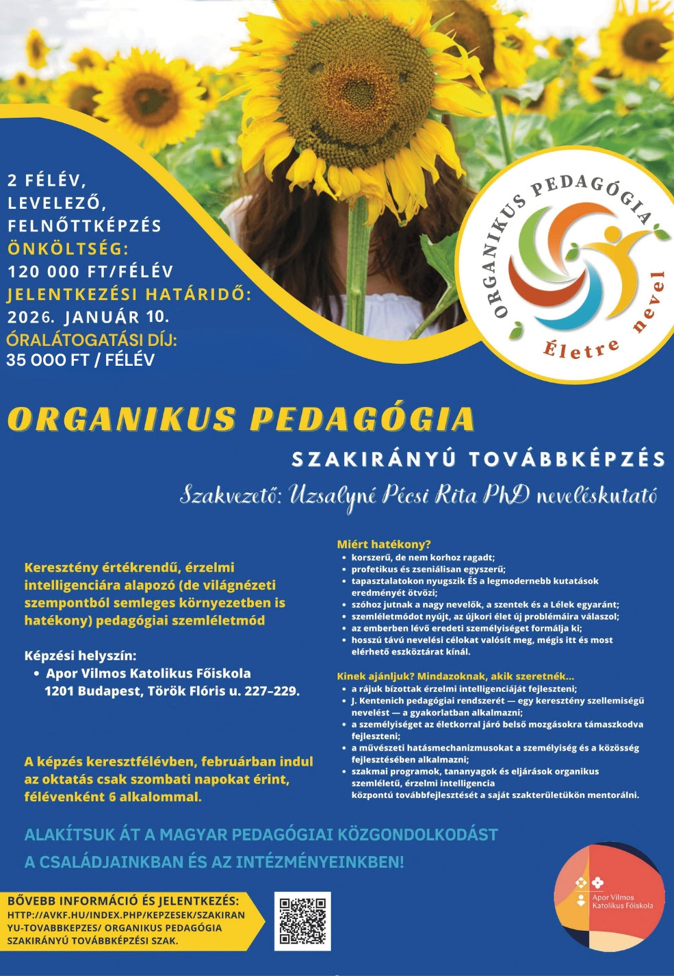 További információk: A képzés oldalán https://avkf.hu/kepzesek/szakiranyu-tovabbkepzes , ill. pecsi.rita@avkf.hu