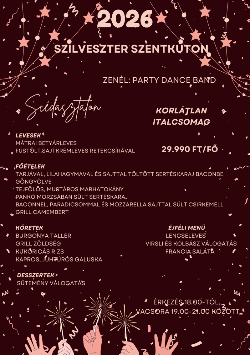 Mátraverebély-Szentkút étterme szilveszteri bált szervez, amelyre még lehetőség van jelentkezni.