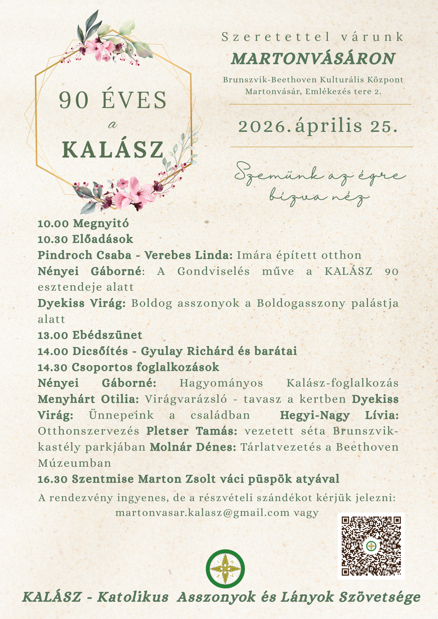 Szeretettel várunk minden érdeklődőt a KALÁSZ megalakításának 90. évfordulóján, a katolikus keresztény nők ünnepén!