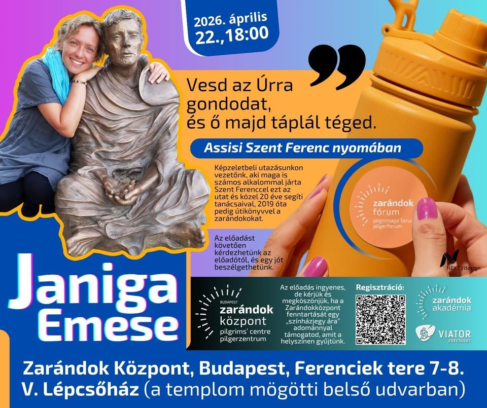 Képzeletbeli utazásunkon Janiga Emese lesz a vezetőnk, aki maga is számos alkalommal járta Szent Ferenccel ezt az utat és közel 20 éve segíti tanácsaival, 2019 óta pedig a magyar nyelven is megjelent útikönyvvel a magyar zarándokokat.